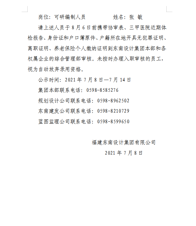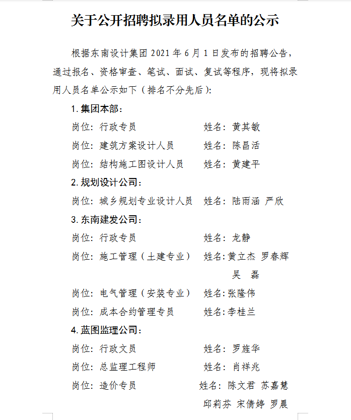 關于公開招聘擬錄用人員名單的公示